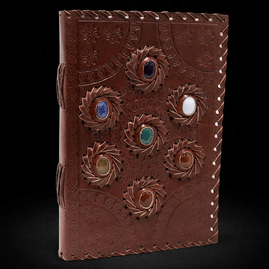AWGifts Dropship Europe Leather Chakra Stone Notebook (22.5x15cm) . The perfect gift for many an occasion. Bring a bit of “Game of Thrones” magic to your shop. Details include buckles, metal clasps, wrap-a-round thongs, burnt edges (see No.06). Each Notebook has its own unique style and purpose. Eg the world map design for a travel journal. The books can be used as a notebooks, diarys or sketchbooks.