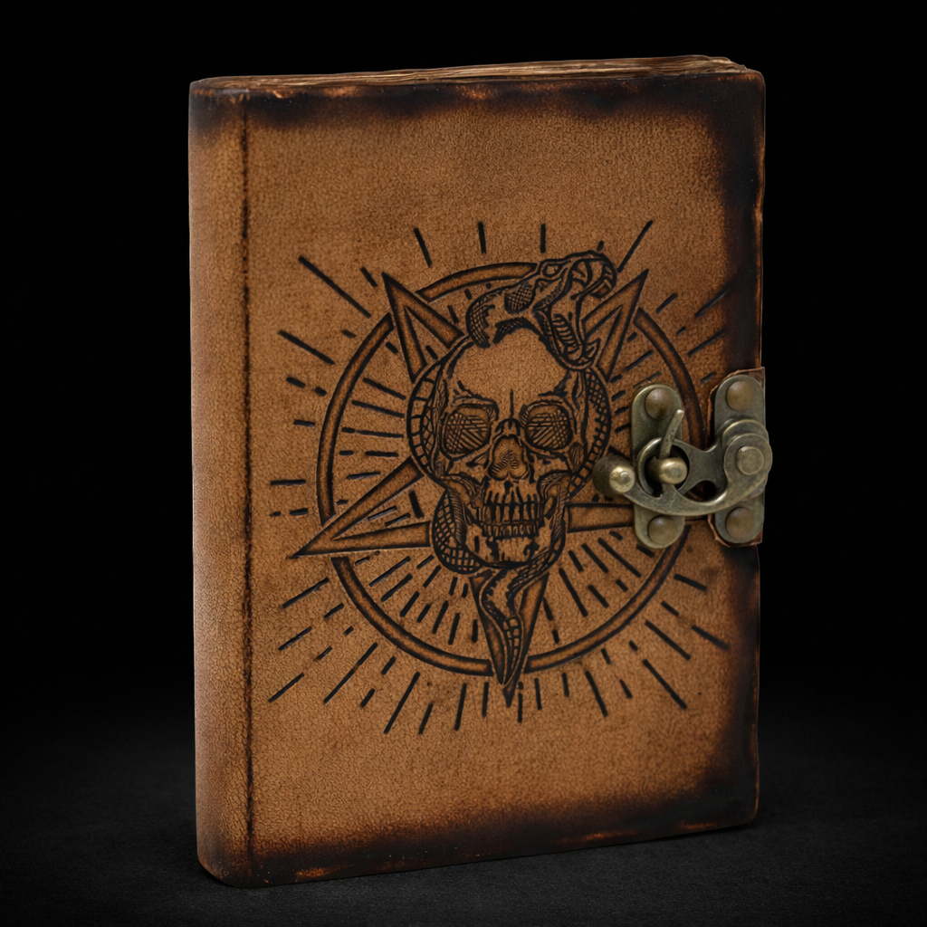 Leather Pentagon & Skull with Burns Detail Notebook (18×13 cm)